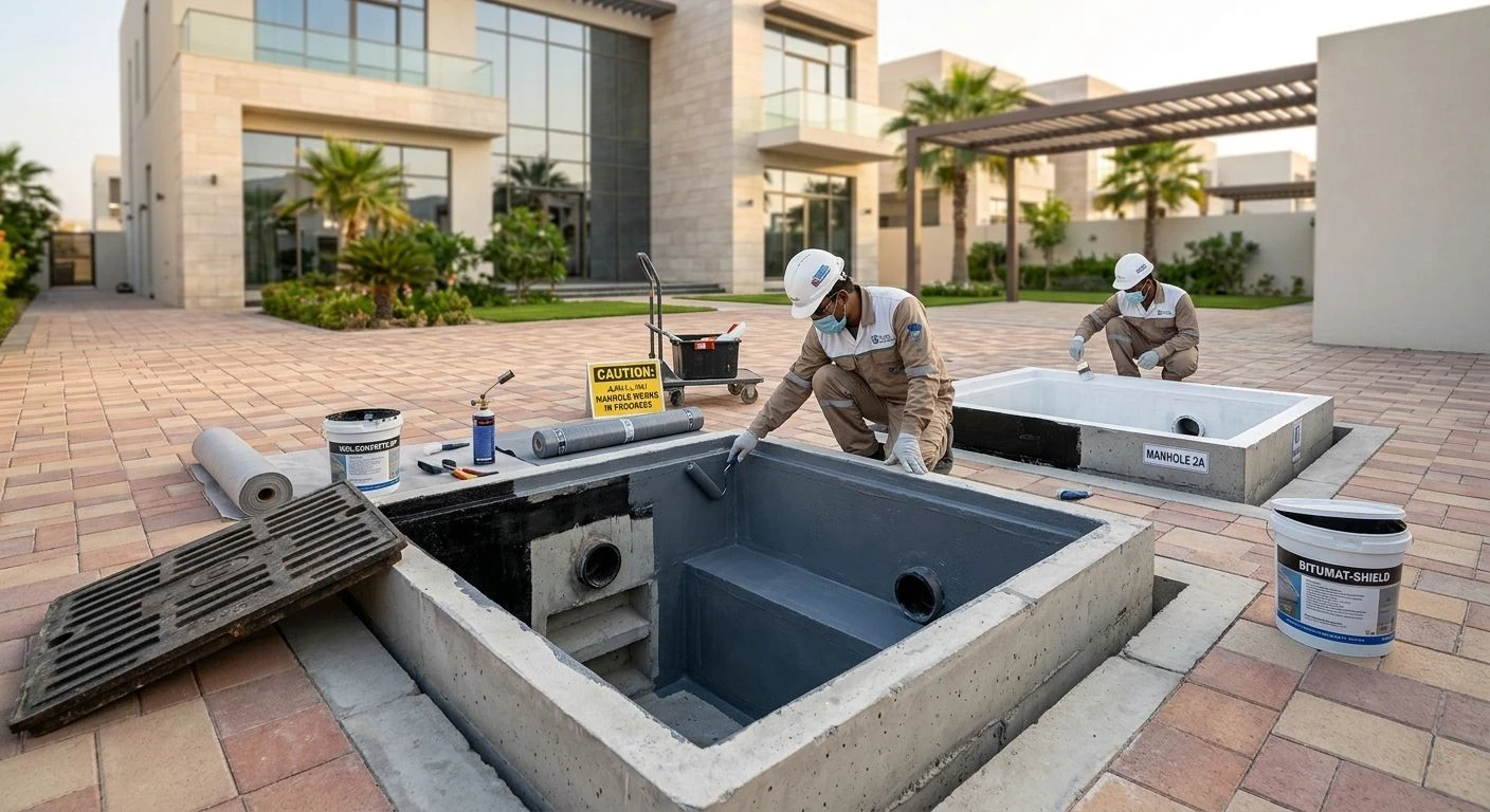 Applying professional waterproofing layers to manholes and cesspits to prevent water leakage into building foundations, protecting properties from moisture and long-term structural damage.